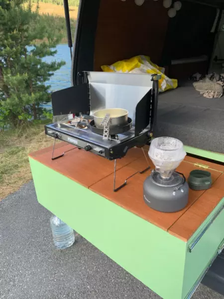 Översätt med Google TranslateDobbel Primus, kjøleboks, el.takvifte, lys, usb-lader, presskanne, kjeler/panne+ stekepanne, Kopper og fat + bestikk, oppvask-kum, vanntank 20L + 10L, campingbord + stoler, brannslukker/gass-brannalarm og tarp. Et 2p telt + liggeunderlag kan leies for en ekstra sum om man ønsker det.