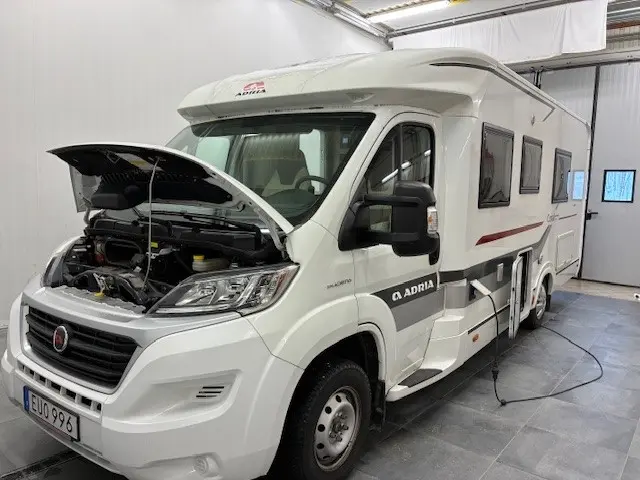 Full utrustad husbil i nyskick. Vattenburen värme, solceller, TV, Ugn, Dusch, Långbäddar med WC och Dusch bak. Backkamera, Automatlåda, ACC,