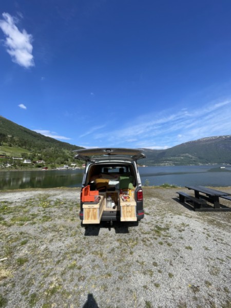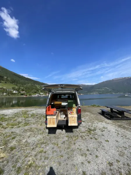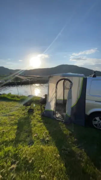 Visa originaltext- Fler bilder kommer - Cykelställ kan hyras för 200 kr extra - Separat utrymme för skidor inuti bilen - Brandsläckare, rökdetektor och gasdetektor finns i bilen - Lampa och USB-C-uttag i bilen - Kan användas på vintern, men är beroende av externt uttag för att hålla värmen (värmefläkt och förlängningssladd ingår) - Omvandlare i facket med 220V (kan endast användas när motorn är igång)