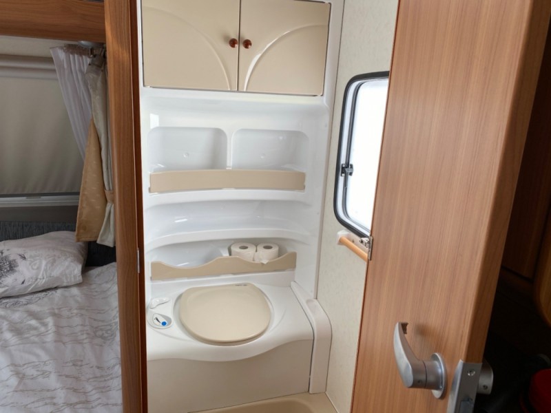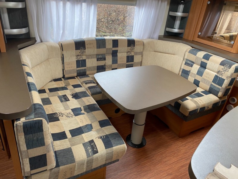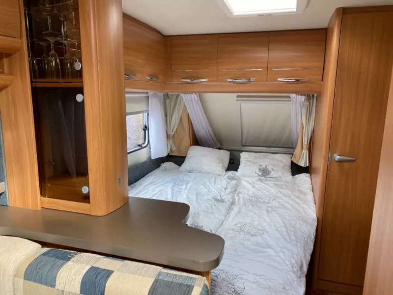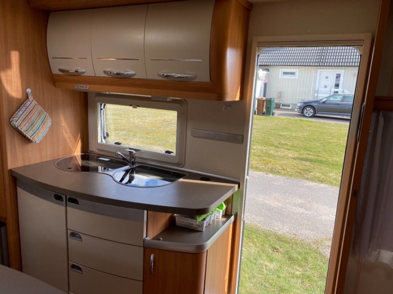 Grillen är kolgrill Jalusi finns mellan våningssäng och sittdel samt mellan dubbelsäng och sittdel. Avlastningsbord att använda i förtält eller ute ingår.