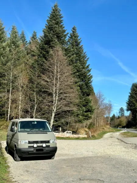 View original textI'm offering my VW T4 campervan for rent. Ideal for trying out road trips, or a weekend getaway with family, as a couple, or with friends! Its compact size means it can go almost anywhere, unlike a motorhome, but you'll still have the advantages of storage, sleeping space, and a refrigerator. No air conditioning, but it does have a great fan. Class 1 tolls. 3 seats and 2 berths. The front bench seat swivels, and the table opens, allowing you to eat inside the van. Manual transmission. The vehicle is equipped with an outdoor table and two chairs. At the end of your stay, the campervan must be returned clean, as it was when you picked it up. PS: Recently repainted in military green and fitted with long off-road headlights, this unique van is ready to take you on unforgettable adventures.
