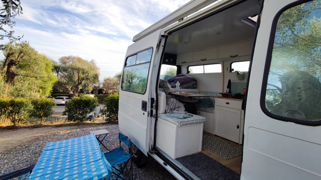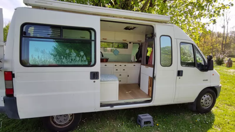 View original textA beautifully converted campervan with a lovely interior, though the exterior is a bit battered (for theft protection :)). The vehicle has everything you need, including a solar panel, a leisure battery, and an inverter, making it self-sufficient.