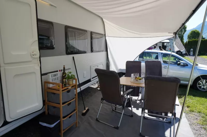Translate with Google TranslateGrosser Kühlschrank mit Eisfach Komplett ausgestattete Küche mit 3fach Gasherd WC mit kleinem Lavabo Gasheizung Vorzelt, komplett geschlossen (mit Steck-Gestänge, separate Seitenwände und Front) - Fahrradträger für zwei Velos auf Deichsel - Tisch mit fünf Stühlen für draussen - Kleines Möbel mit Staufächern für draussen - Kaffeemaschine - separater Gasgrill mit Pizzastein und Grillpfanne für draussen - zwei Sonnenschirme, zwei Liegestühle - SUP (zusätzlich 50.- pro Aufenthalt)