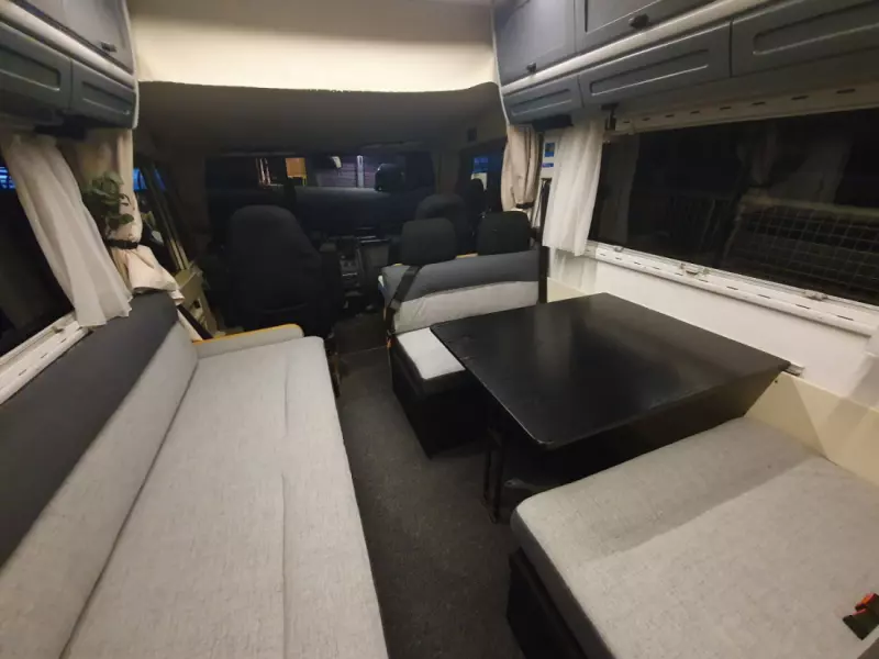 View original textThe car has a detailed instruction manual on all the devices and systems on board. Before the rental, a digital copy is sent, so you can read it and ask any questions when going through the camper and check-in will be more efficient. Seatbelts are available on 6 seats: 2 in the front and 4 in the back (train seating) 150L water tank, city water connection with quick coupling. Converter to 220V at 2000W (connect computer, hair dryer, straightener without connecting to the mains) Fixed LPG gas tank (refueled at many gas stations instead of changing gas bottles) The car is equipped with everything you might need for a comfortable stay The kitchen has pots, frying pan, plates, mugs, glasses and cutlery including grill knives as well as: soap, detergent, sponge, kitchen paper, spices, etc. The car also has a small Weber charcoal grill.. Bring your own shower towels. There are 4 bed pillows, 2 thinner and 2 warmer duvets, 4 pillows and 2 blankets. Bring your own bedding, but possible to rent - please inform before booking. The car is delivered clean and fully fueled, with a full gas tank (a bottle of gas is included in the rent and does not need to be filled when returning) Hand soap, small towels, toilet paper, kitchen towel, paper roll included. The motorhome is returned cleaned with a full tank of diesel, emptied and cleaned toilet cassette, emptied garbage and emptied gray water tank.