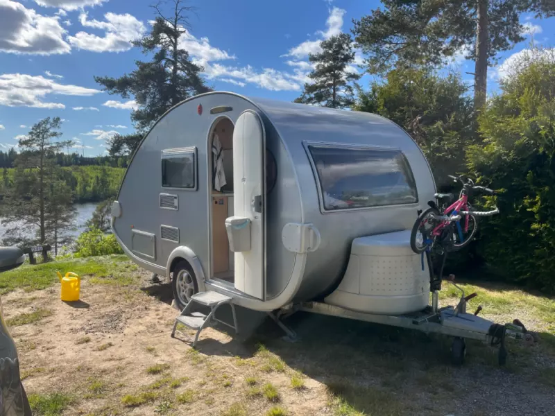 View original textSuper charming and easy to pull trailer with space for 2 people in a double bed with a real mattress (140cm) and 1 (smaller) person in a lowered seat in the front. Isabella awning, simple sun canopy and basic camping furniture included. Kitchen with gas stove, refrigerator with freezer compartment. Solar panel that charges the battery means you are not dependent on an electrical connection when camping outside the camping area. Easy to maneuver even unconnected (i.e. "by hand") thanks to low weight and small size. Are you interested in booking a blocked period? Write to me and we will coordinate. Some dates are reserved for your own use but can be flexible. In some cases, delivery can be arranged by agreement.