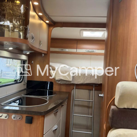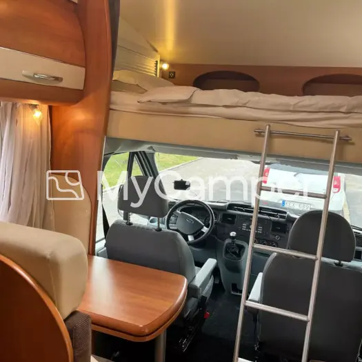 Bilen ska inte framföras fortare än 110 km/h. Denna hastighetsgräns måste respekteras. Det finns 2 st smart-TV i bilen, titta på tv via appar, det ingår wifi. Det finns antenn för marksända kanaler och man kan även koppla in ex chromecast osv. Alkovsängen är 150 cm bred, tvärsängen bak är 130 cm bred. Fördelen med denna bilen är att sällskapsdelen och sovplatser är fasta dvs man behöver inte bädda upp eller ner någon sittdel för att sova. Husbilen är lämplig för t ex 3 - 4 vuxna eller 2 vuxna och 2 barn eller färre. Rökning är förbjudet inne i husbilen.