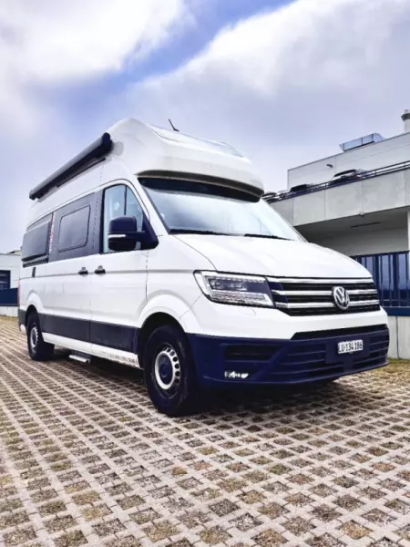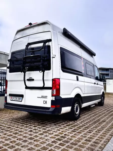 Translate with Google TranslateUnser VW Grand California 600 verfügt über viele Assistenzsysteme, was das Fahren von langen Strecken ungemein angenehmer macht: – Automatische Distanzregelung ACC – Rückfahrkamera – Verkehrszeichenerkennung – Spurhalteassistent – Toter Winkel Warnleuchte – Navigationssystem mit 8 Zoll Touchscreen – Reifendruckkontrollanzeige – Parksensoren – und vieles mehr … Das Campingerlebnis wird verbessert durch: – Solaranlage auf dem Dach – Sonnenmarkise – 2 Campingstühle mit Campingtisch – Tisch für den Wohnbereich – Grosse Dachluken hinten und vorne – Truma Wasser- und Luftheizung (wahlweise per Gas oder Strom betreibbar) – Frischwassertank 110L – Moskitonetze und Verdunkelungen integriert in allen Fenstern und der Schiebetüre – Verdunkelungen inkl. Isolierfunktion für das Fahrerhaus – Nasszelle mit Dusche, Waschbecken und Toilette mit Sogentlüftung – mehrfarbige Ambientebeleuchtung – Drehsitze links und rechts – und vieles mehr … Zudem ist sehr viel Stauraum vorhanden: – Ablagesystem oberhalb Schlafbereich – Ablagesystem oberhalb Küchenbereich – im Kofferraum unterhalb des Schlafplatzes mit integriertem Heckauszug – über dem Fahrerbereich / Kabine (wichtig: über dem Fahrerhaus ist kein zusätzliches Bett integriert und darf auch nicht für Kinder als Schlafplatz verwendet werden) – Integrierter Fahrradträger am Heck für bis zu 2 Velos (keine E-Bikes)