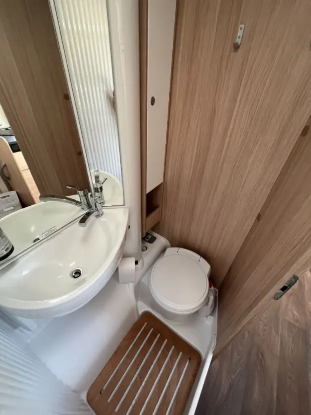 View original textCutlery, plates, glasses etc for 6 people are available. Most of what is needed for cooking is also available. Table and chairs for outdoors up to 5 people. 6 belted seats with sleeping area for 5 people (1 bunk bed for 2, a smaller sleeping area and a double bed) Need C1 card, or driver's license before -96