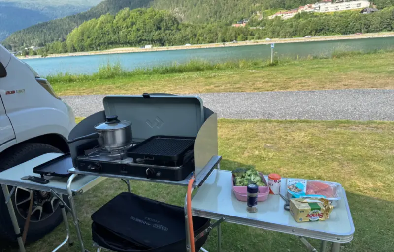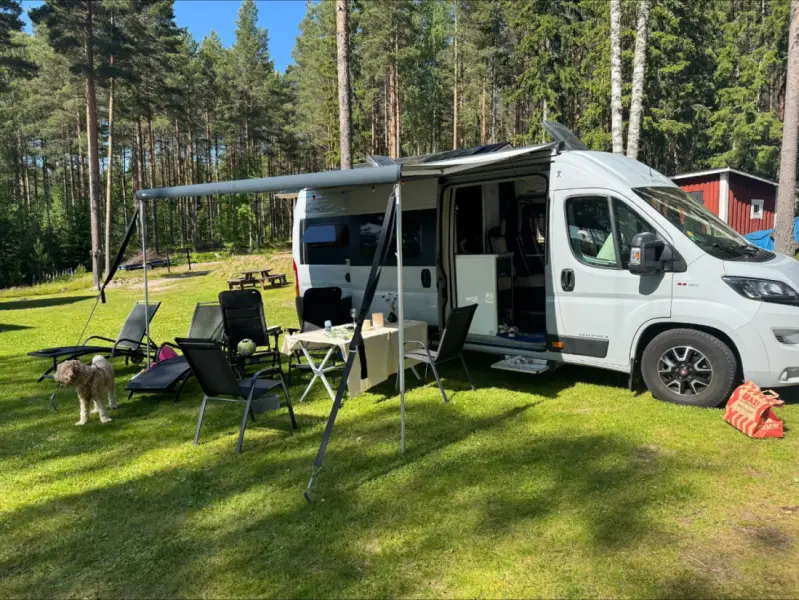 View original textA fantastic premium camper van from Westfalia. With water-based underfloor heating, long beds in the back and a folding seat in the front, it can accommodate a family of four. It is ideal for free camping. It has solar cells, a large battery and a 12 v compressor refrigerator. Heating and hot water are provided by a diesel boiler. Newly installed Maxxfan 12 v which provides a more comfortable climate in warmer weather. New outdoor furniture for the season (two armchairs, a table and a sofa) and a grill are included.