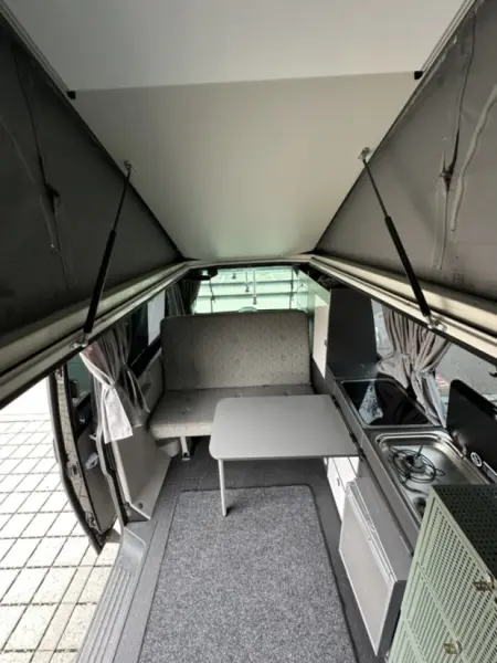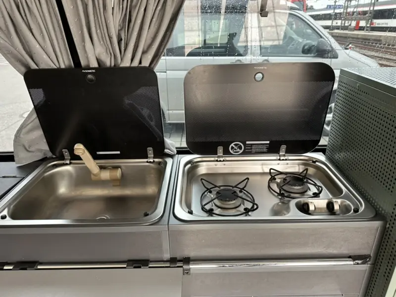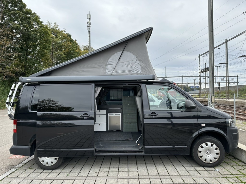 Translate with Google TranslateDer Camper basiert auf einem VW T5 mit Summermobil-Ausbau und bietet dank langem Radstand besonders viel Platz im Innenraum sowie grosszügigen Stauraum. Schlaf- & Sitzplätze • Platz für bis zu 5 Personen (Fahrbetrieb) • Schlafmöglichkeiten für mehrere Personen durch Aufstelldach und Innenausbau Küche & Innenraum • 2 Gaskochfelder • Waschbecken • Praktischer Innenraumtisch (platzsparend unter der Matratze verstaubar) • Modernes, schlichtes Innenraumdesign Komfort & Ausbau • Aufstelldach für zusätzliche Stehhöhe und Schlafplatz • Lange Version (mehr Platz als Standard-T5 Camper) • Viel Stauraum für längere Reisen Aussen & Zubehör • Markise (neu, Thule) • Anbaubares Aussenzelt (zusätzlicher Wohn-/Stauraum) • Veloträger • Schutzhaube für das Aufstelldach Strom & Autarkie • Feste Innenbatterie (Bordnetz für Grundversorgung im Camper) • Zusätzliche Powerstation mit ca. 1 kWh Kapazität • Solarpanels zur unabhängigen Stromversorgung unterwegs (für die Powerstation) • Eine Mobile Dusche mit Handpumpe und Brausekopf kann auch gerne mitgegeben werden. Technik • Allradantrieb (ideal für unterschiedlichste Untergründe) • Technisch einwandfreier und gepflegter Zustand
