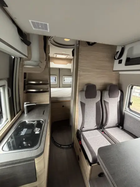 The motorhome has two beds, one in the back (195x140cm) and a drop down one in the front (185x130cm).