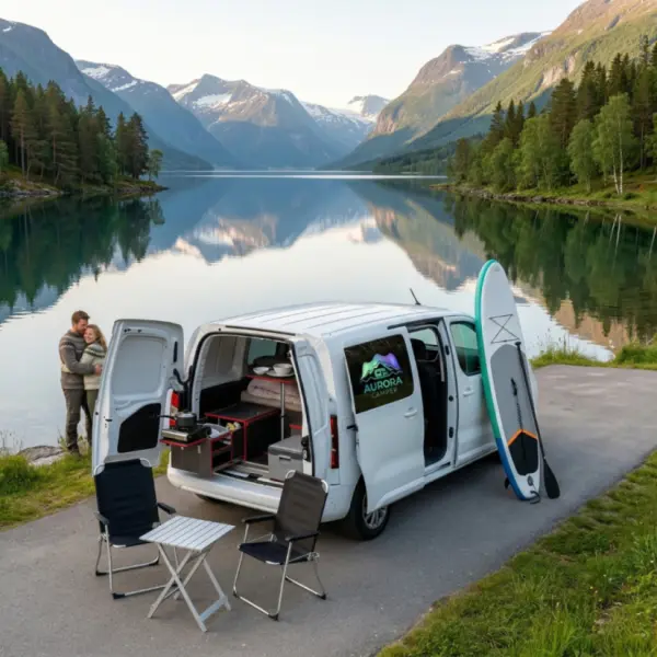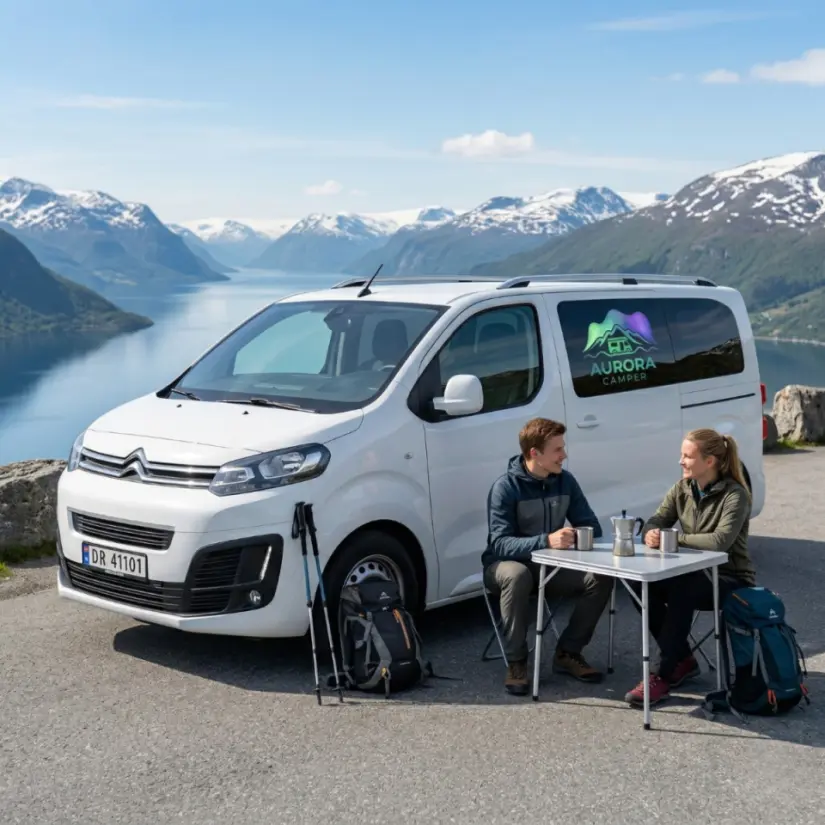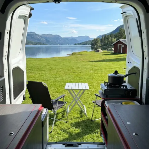 Translate with Google TranslateLocation: Oslo, Norway Transmission: Automatic Driver’s license: Class B Important: MyCamper does not provide insurance for the vehicle. Insurance and the deposit are purchased separately through our website. You can choose between: Free insurance – 16,000 NOK will be held on your card (plus a 3% transaction fee). Full protection – 230 NOK per day, no deposit required. Please let us know which option you prefer. 💳 Deposit: A deposit of 5,000 NOK will be refunded within 2 weeks after the rental period ends. Are you planning to explore the Norwegian fjords? Our affordable prices and maximum comfort will help make your journey unforgettable. The van has an automatic diesel transmission with an average fuel consumption of approximately 5 L per 100 km and can be driven with a Class B driver’s license. It seats three passengers (however, for maximum comfort, we recommend two). The vehicle is in good condition and is equipped with cruise control and rear parking sensors. The van is equipped with: Comfortable bed (125 × 200 cm) 1 large table 2 chairs Camping equipment (cups, plates, frying pan, pot, kettle, coffee press, manual coffee grinder, cutlery) Gas stove (1 burner included) 12-liter water container Refrigerator 2 blankets and 2 pillows Portable charger 12V to 230V inverter (for charging devices on the go) Power station with AC outlet and 2 USB-A ports Extras available: Outdoor tent with inflatable mattress, two inflatable pillows, and two summer sleeping bags – 800 NOK Inflatable one-person boat – 500 NOK Kayak SUP board Wi-Fi And many other extras can be ordered directly through our website 🧼 Cleaning fee: A cleaning fee of 350 NOK applies to all rentals. If you know in advance that you will need a higher mileage allowance, we can agree on a price beforehand. Feel free to ask if you have any questions 😊