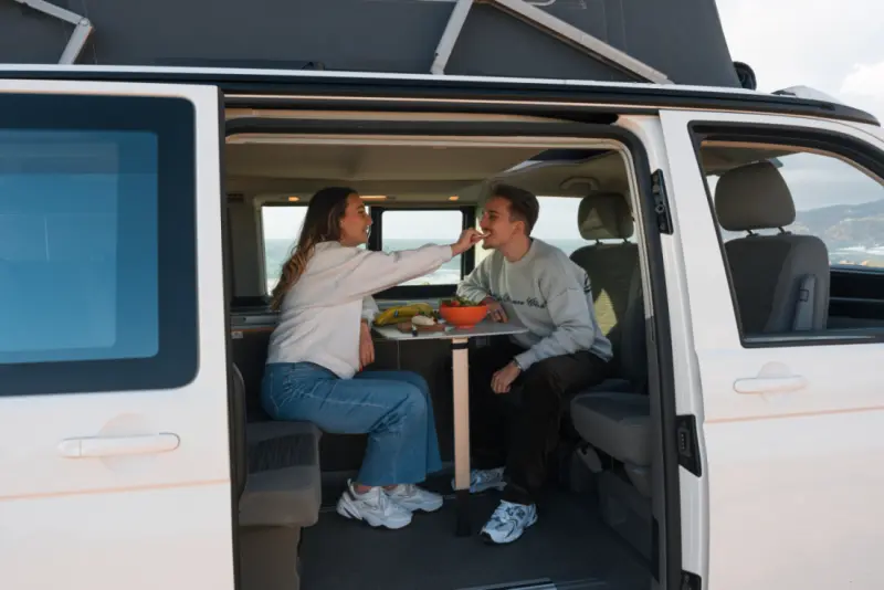 The California Standard is a compact and versatile campervan, perfect for road trippers looking to explore both cities and nature without compromise. With seating and sleeping for up to four people, this model offers a clever layout that maximizes comfort and space, making it ideal for couples, friends, or small families. You’ll receive a campervan similar to the one pictured, with comparable features and conditions. While layouts may vary slightly, every Active Bunk model offers a smart and cozy interior with all the essentials for a memorable journey. Sleeping arrangements include a pop-up roof bed for two people and rear seats that fully recline and convert into a double bed. The sliding rear seats allow you to create flexible spaces for dining, relaxing, or sleeping, helping you make the most of every inch of the interior. The kitchen area is compact yet functional, equipped with a two-burner stove, sink, and a fridge. It gives you everything you need to prepare simple meals on the go. The interior layout is designed to be fully adaptable. The reclinable rear seats serve as your lounge area by day and convert into a bed by night, while the pop-up roof adds extra headroom and an elevated sleeping space. Storage is available throughout the van to keep your gear organized and accessible. Thanks to its compact size, the California Standard is easy to drive and park, even in busy city streets or remote areas, offering the freedom to explore wherever the road leads. Your rental includes 24/7 customer support, roadside assistance, a kitchen kit, and a cleaning kit, giving you everything you need to set off on your next adventure fully prepared.
